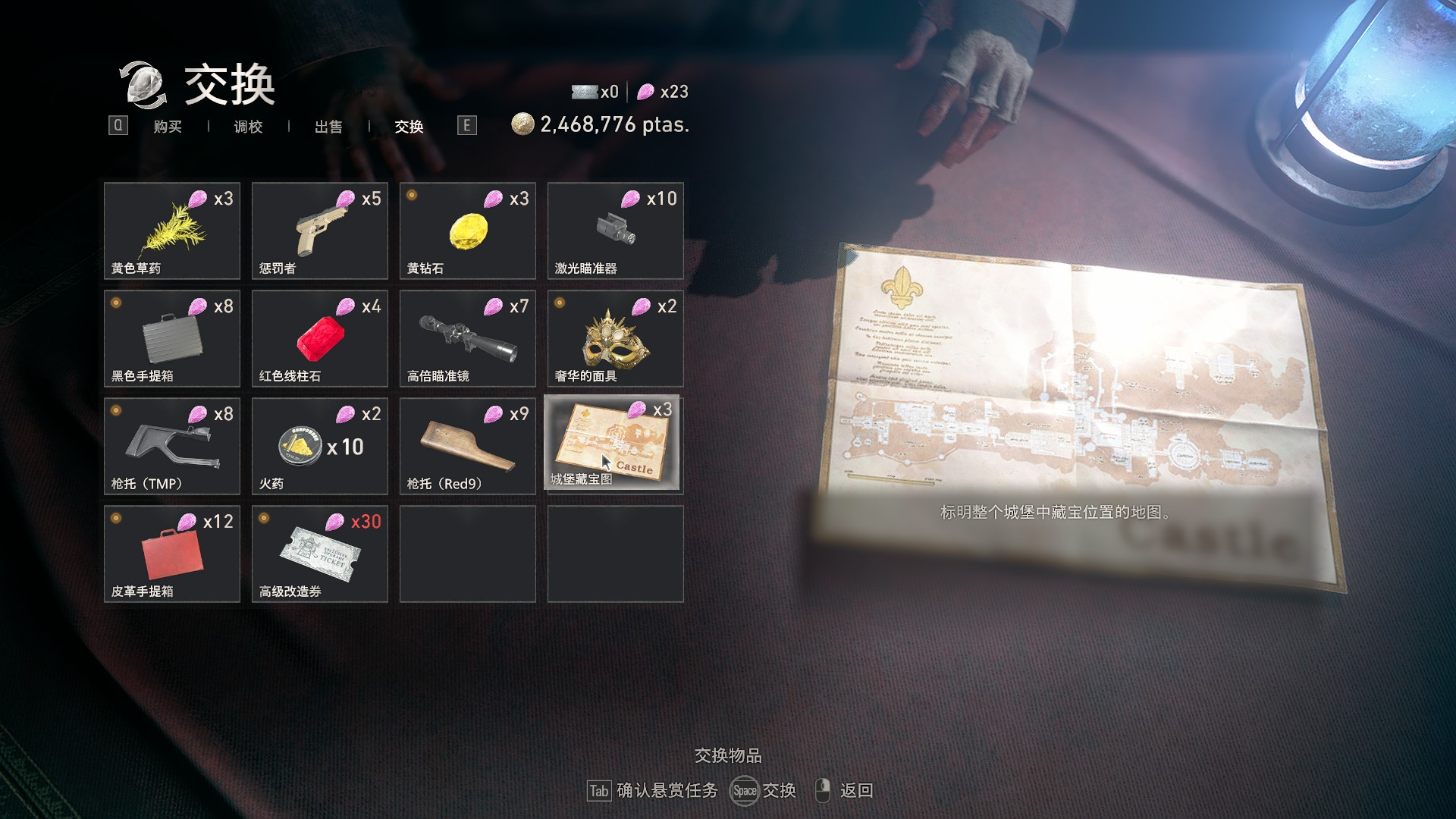 于商人处使用尖晶石交换城堡藏宝图