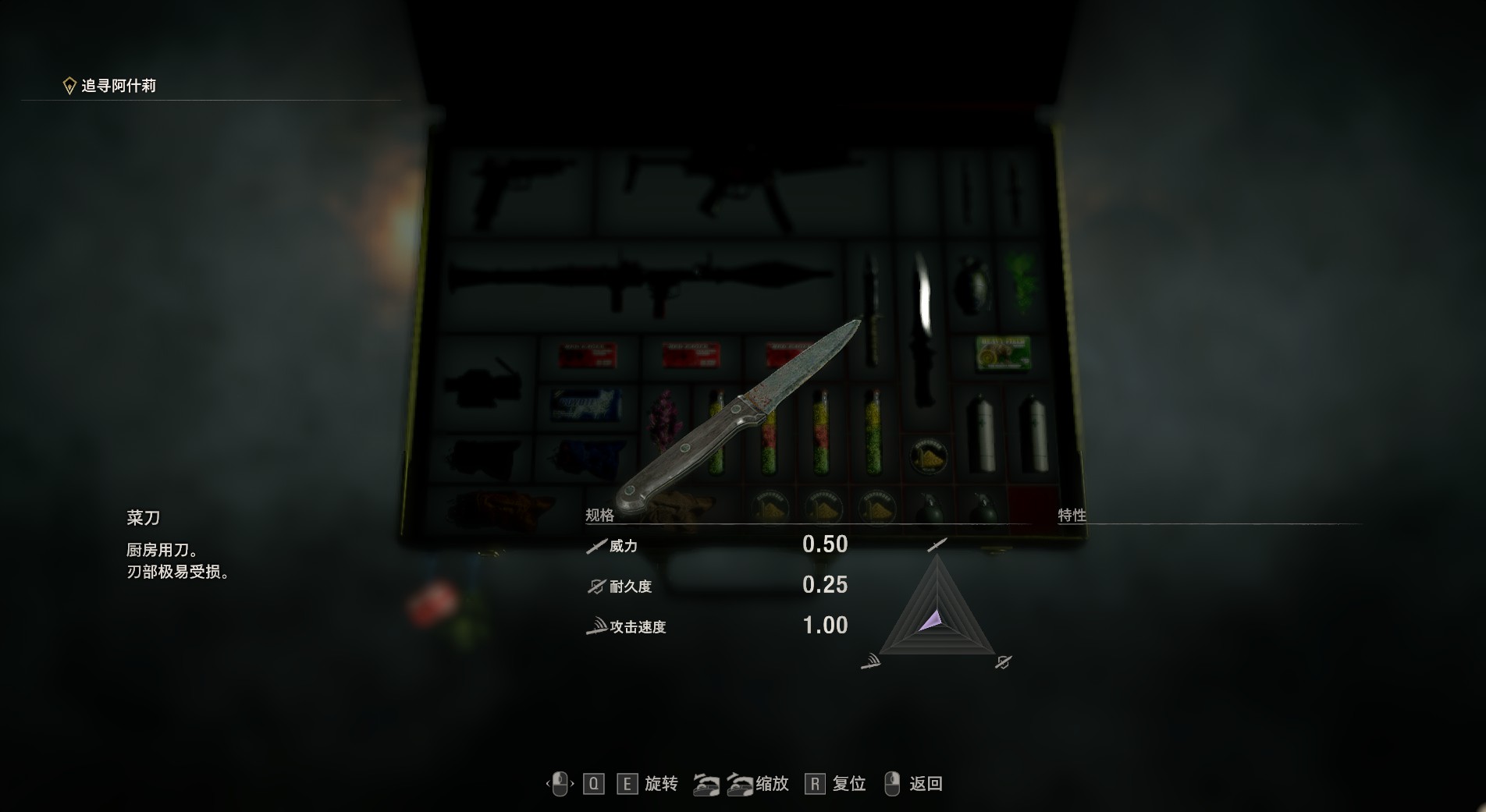 《生化危机4:重制版》是原作生化危机4的一部重置作品,是卡普空新推出的一款作品。菜刀是游戏中的一把武器,玩家只要把武器全部获得全,就能解锁一个成就。菜刀这个武器农场区域搜刮掉落。