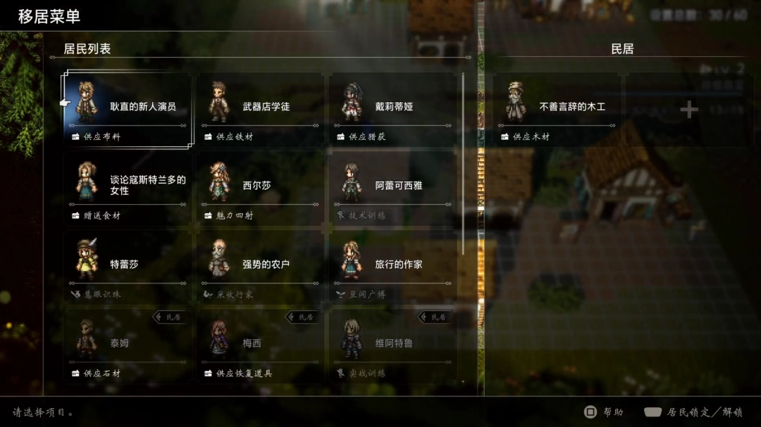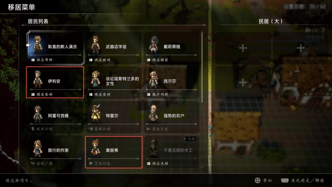 在移居菜单栏中,将伊利安和奥利弗移居至大民居。