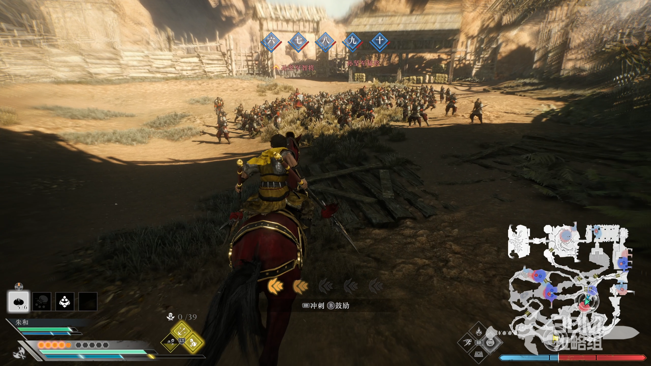 这里敌将众多,尽量将无双槽填充满再面对敌人。(无双槽可以回血)