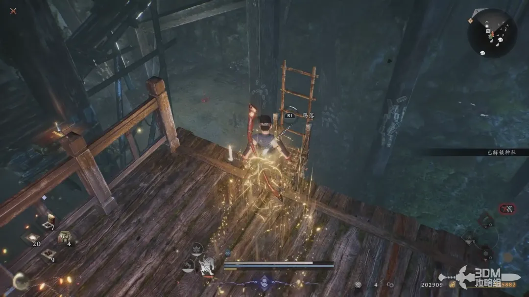 跳到神社平台,旁边有个捷径开一下。