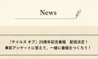 为了纪念《传说系列》25周年,万代南梦宫宣布将举办《传说系列》25周年纪念直播。 现场直播将包括《传说系列》相关制作人的游戏开发故事和趣事,以及围绕用户问题和问卷调查回答的讨论。还将公布有关系列手游故事,活动,周年纪念物品等的最新信息。直播日期以及出演者暂不明,不过万代表示很快就会公布。 《传说系列》的首部作品《幻想传说》于1995年12月15日在日本面向超级任天堂平台推出以来,该系列已在世界范围内取得了广泛的关注。目前,该系列中的最新作品《破晓传说》正在开发,将登陆PlayStation 4,Xbox One和PC。