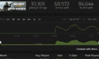 《使命召唤14》PC(Steam)平台BETA多人公测从9月29日开始,10月2日结束。那么这次BETA测试吸引了多少玩家参加呢?根据SteamCharts统计,本次BETA公测,最高同时在线玩家达到了8万4644人。目前有3.3万名玩家在线,过去24小时最高峰值达6.8万人。由于锁国区,加上PC BETA之前游戏已经在PS4和Xbox One上测试过,因此相对来说,《使命召唤14》PC平台BETA测试参加人数并不算多,最高没有超过10万人。另外,《使命召唤》系列最近的作品Steam版向来人数不多,鬼服非常快,因此BETA公测人数相对较少也在意料之中。下面是Steam上目前玩家人数最多的十大游戏:1.《绝地求生》,44万2.《DOTA2》,32万3.《CS:GO》,25万4.《军团要塞2》,5.7万5.《神界