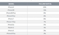 各iOS设备故障率排名:iPhone 6最高iPhone X最低数据安全公司Blancco本月发布报告,其中指出在所有iOS设备中维修率最高的型号是iPhone 6,最低的是iPhone X。Blancco将iOS和安卓手机全部统计在一起分析1-4月手机故障率。在安卓阵营中三星手机的维修率最高,iOS阵营中iPhone 6的故障率为22%,是iOS设备中故障率最高的型号,苹果iPhone 6s故障率为16%排名第二。2018年第一季度安卓设备整体故障率为18.9%,iOS则为15.2%整体远低于安卓设备。在iOS设备中,其他产品的故障率均在10%以下。iPhone X和iPhone8 Plus最低仅为3%。Blancco分析iPhone 6以及6s故障率高的原因集中在软件升级给iPhone 6/6s的电池寿