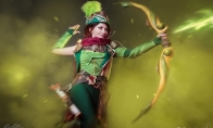 《Dota2》天辉阵营中有个女英雄叫风行者,浑身绿色装扮很有特色,今天俄罗斯Coser amiomio放出了风行者Cos作品,妹纸的妆容造型以及神态,让人觉得游戏中的风行者在现实中就应该是这样的。Cos美图: