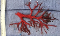 据外媒报道,美国加利福尼亚州的一名36岁男子因慢性心脏衰竭住院治疗,住院期间在一次剧烈咳嗽中,竟咳出右边整个支气管树形状的血块。该病患一周后因心脏衰竭并发症辞世。新英格兰医学期刊(NEJM)的个案报导指出,加州大学旧金山分校医学中心医师提出一名36岁病患的案例,该男子因慢性心脏衰竭被送进加护病房。该男子过去心脏状况不佳,就医时他心脏植入的心律调节器已完全阻塞。他入院第一周便咳出血和黏液,后来他开始严重咳嗽,最严重时,咳出右边整个支气管树形状的血块,隔周便过世。 该男子有二叶式主动脉瓣窄狭的问题,生前心脏曾装换过人工瓣膜。一般人每搏输出量和舒张末期容量的比例(射血分数)介于50%-70%,但该病患仅剩20%。他入院期间频繁咳嗽,医生需要为他补充越来越多氧气。在一次剧咳中,他咳出的血块是整个支气管树形状,包括右上、