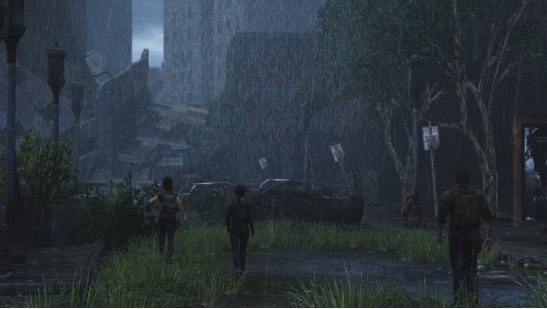 在《末日余生》中,Joel在许多动作表现方面非常地细致。此处Joel可以随时爬上车顶或在邻近的车顶间穿越。平时走路,攀爬等姿态都十分真实。雨中湿身与在隧道中淌水而行,或是游泳时在皮肤和服装的表现上有所不同。