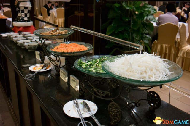 3月2日,北京,政协经济界和农业界委员的驻地,委员们吃自助餐,用餐以简单为主,餐品比往年少了许多。凉菜三种,水果两样,肉菜有鸡腿,扣肉和小炒,没有酒。现场制作的有担担面、糊塌子、卷烤鸭。