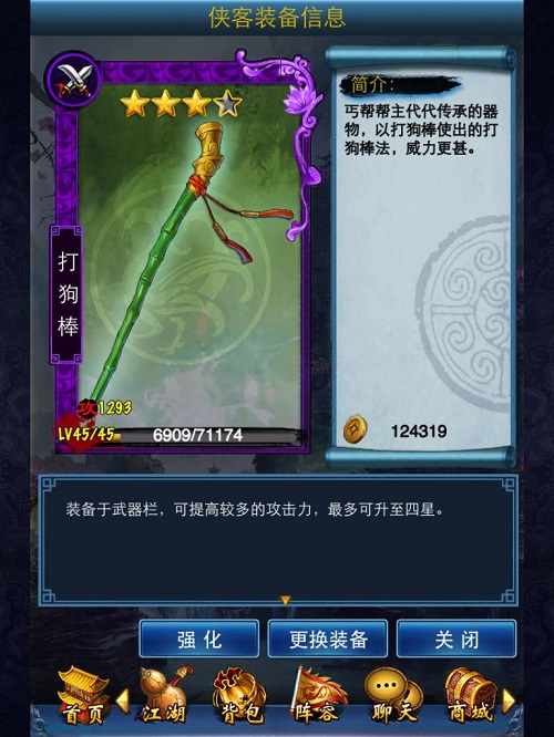武林至尊,宝刀屠龙,号令天下,莫敢不从,倚天不出,谁与争锋?《倚天屠龙记》中因为屠龙刀和倚天剑,不知道惹起了多少波江湖厮杀,葬送了多少英雄红颜。《东邪西毒》让你完全不必担忧这个问题,收集神兵利器建个兵器库都OK!打狗棒、金丝软甲、玄铁重剑……无数神兵利器可供玩家选择,进阶成为大侠指日可待!