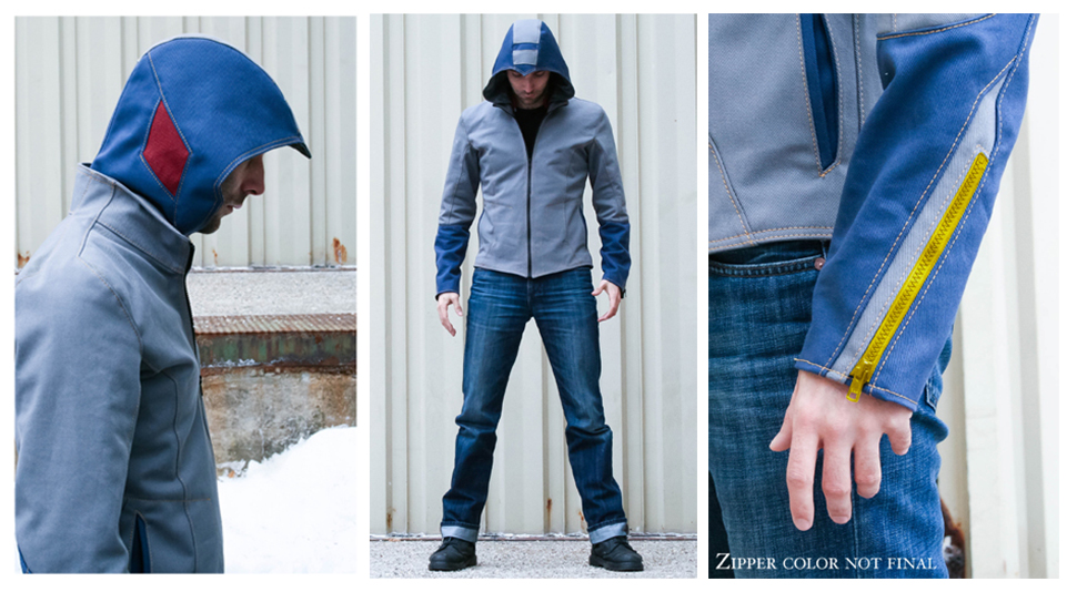 Capcom与Volante设计公司联合起来设计了这款让《洛克人》粉丝口水直流的性感夹克。这件衣服的剪裁风格很严肃,兜帽可以移除,两袖的拉链都是鲜黄色,模拟了能量条,甚至还有一款女版!