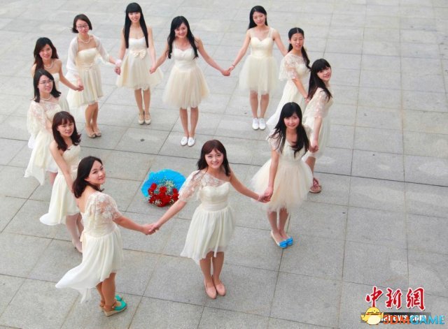校园内的集体婚纱照。