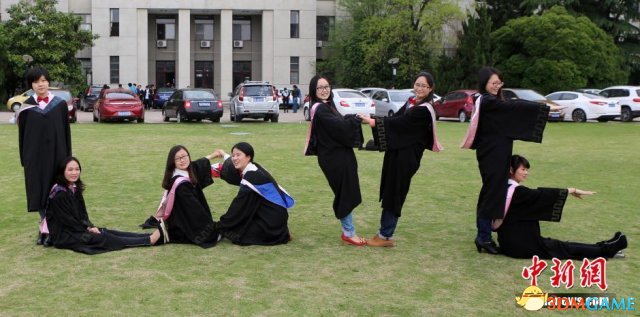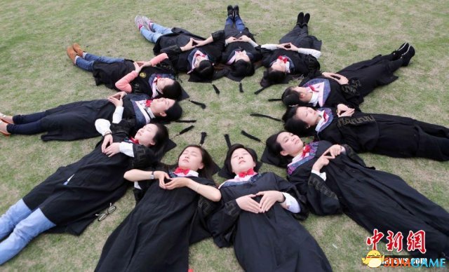 穿上学士服摆出奇异造型,想用这种方式纪念青春,为大学时代留下美好回忆。