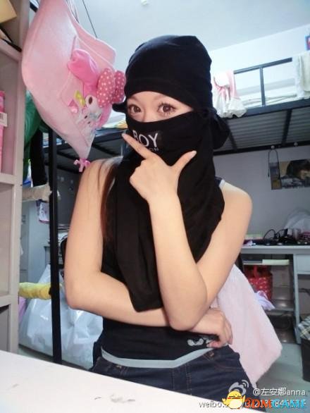 T恤套头,牛仔裤上穿,看到这样的搭配你会认为是疯子,而最近爆红网络的忍者校花,却是因此萌翻了众多宅男。来自首都经贸大学的左安娜,因喜欢热门手机游戏《忍者必须死2》,在六一儿童节期间发布了一组“七步变忍者”的组图,并在点赞过百后更新多组忍者造型,引发了广大网民的热传。