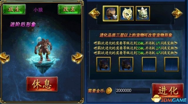 《永恒之井》的宠物进化,可以提供进化成功宠物全新的造型外观。进化后宠物能力大幅提高,可提升等级上限也会开启。通过宠物变异功能,可将宠物属性以变异等级的高低成比例附加到玩家角色身上。而宠物变异消耗的正是多余的宠物,玩家在宠物收集中非自己需求的宠物,可以由此得到利用,不至于浪费。