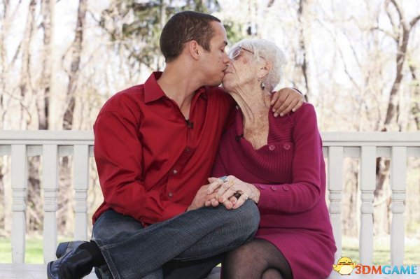 上图中,91岁高龄的新娘老得可以当31岁的Kyle Jones的祖母了,但男主显然偏爱这个类型的女士而不是金发美女。