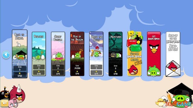 这是《愤怒的小鸟》推出的是一个主打一年四季各个节日的版本,目前有14个版本: 2011(7个): 万圣节、圣诞节、情人节、圣帕特里克节(三叶草)、复活节、夏日猪餐、中秋节 2012(6个):万圣节、圣诞节、春节、樱花节、猪克兰蒂斯(猪猪海洋)、返校季 2013(3个):万圣节、圣诞节、马戏节 现在,万圣节和圣诞节已经作为每年都必出的版本了,万圣节版是在万圣节前夕出的,圣诞节版则是在12月1日出的,每日开1关,到达圣诞节时全部打开。