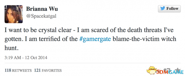 Wu认为这次死亡威胁直接来自一项有组织的网络活动#GamerGate,这个团体将自己定义为“消费者权利呼吁组织”,在各大技术博客和主流媒体上亮相,有许多人通过#GamerGate参与话题。而这个组织与许多针对女性的性别歧视骚扰事件有直接关系。