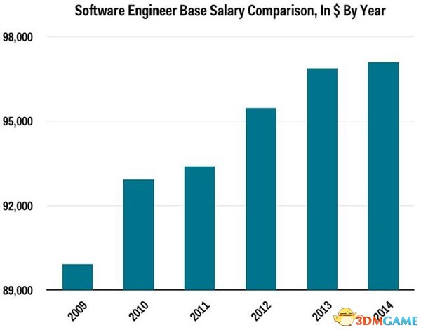 美国招聘网站Glassdoor调查结果显示,今年美国软件工程师的平均年薪为97098美元。虽然较2013年的涨幅不大,但还是创下了历史新高。该年薪为基本工资,并不包含奖金。