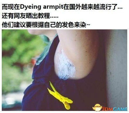 由于越来越多的人崇尚女性的自然美,比如不刮腋毛,以呈现腋下最天然的一面。于是,国外就流行起了给腋毛染色,色系越缤纷越好。。。已经有越来越多的女网友PO出了自己美腻的腋下,你们感受下。。。
