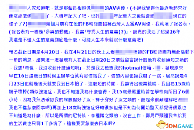 台湾玩家jojobigoldtw日前发布一篇文章:我在日本拍爱情动作片的经过。被台湾网友大赞,称其为“最令人振奋的文章”、“台湾之光”。文中描绘了他参加某日本男优号召的男优企划的过程。