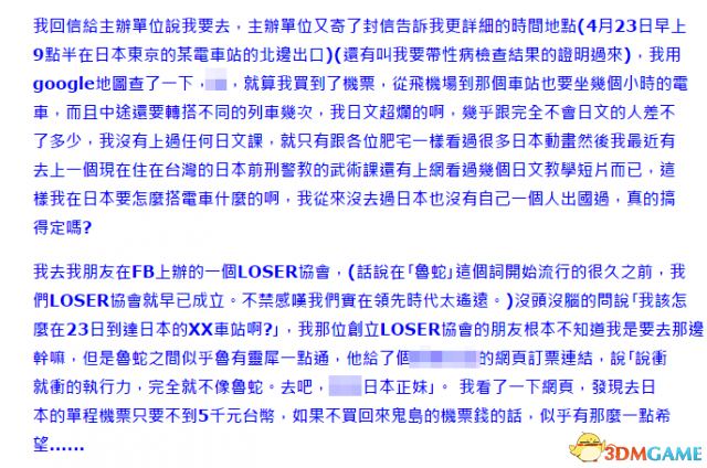 至于回来的过程,jojobigoldtw自称是和打RPG游戏一样走迷宫找宝箱,自己在日本迷宫一样的街道上找到了宝箱,就得到了机票。其实是如果他变成流浪汉会伤害到公司的形象,于是就自己回了家。