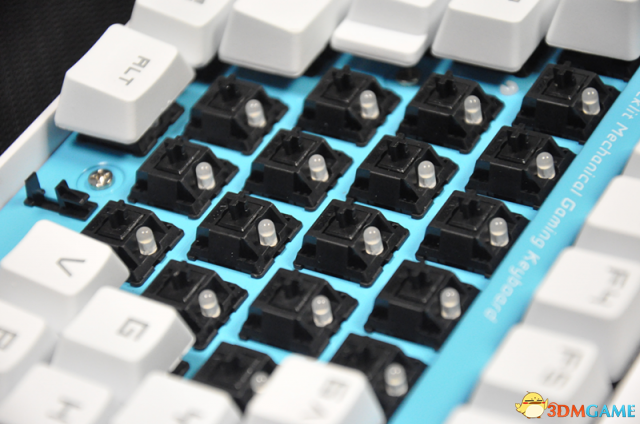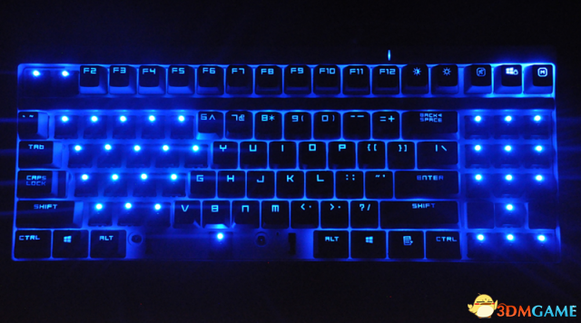 雷柏V500S配有全按键蓝色背光,具有APM呼吸、普通呼吸、常亮三种灯光模式。APM呼吸模式下,灯光亮度会随着按键频率的提高而增强,普通呼吸模式有两级呼吸频率可选,常亮模式下亮度5级可调。纯白键帽配以幽蓝背光使得键盘整体外观更加绚烂夺目。