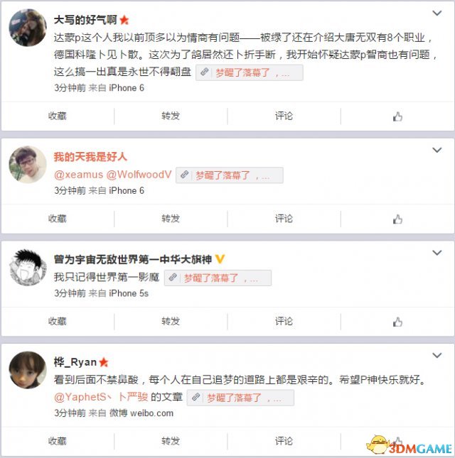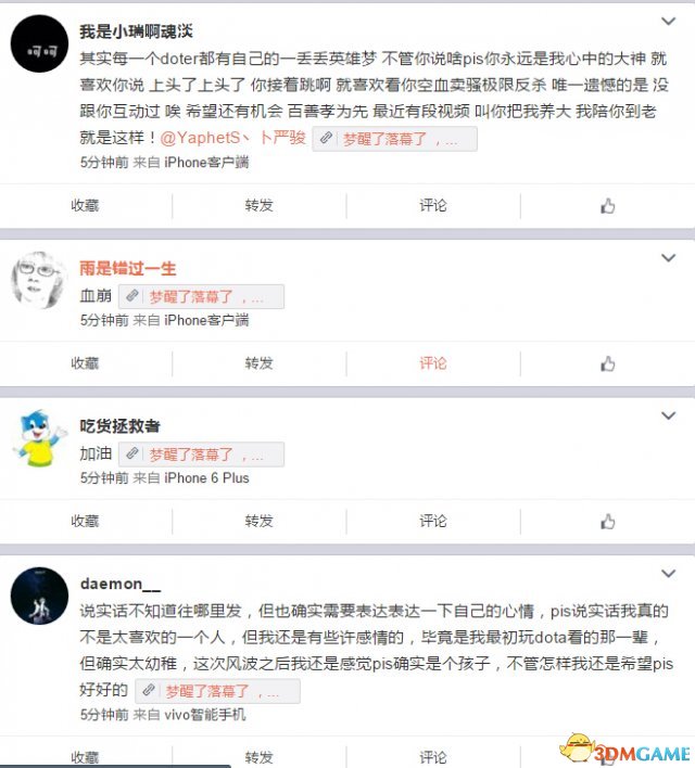 到了最后,该说的也都清楚了,这个荒唐的闹剧终于可以告一段落,PIS微博下的留言有不少调侃之词,很多人高呼“毁三观”、“情商智商双低”、“你是鸽王”、“黑了这么多年也黑不动了”等,当然也不乏送出祝福的,毕竟他是很多DOTAER青春的见证,希望PIS在今后的人生道路上能够顺利吧。