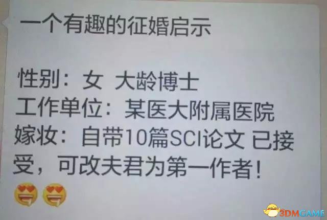 【一个有趣的征婚启事 】某医大附属医院大龄女博士,为了嫁出去也是拼了——自带10篇SCI论文,改夫君为第一作者者者者……