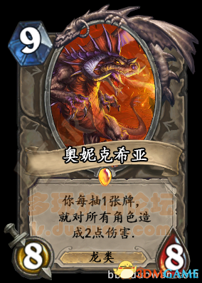 36、奥妮克希亚以前的特效是:每当你抽一张牌,对所有敌人造成2点伤害。