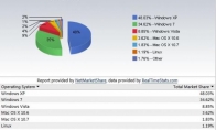 Net Applications早上公布了10月份的操作系统市场占有率分析,刚刚过完10岁生日的Windows XP操作系统依然以48.03%的比例占据主流,但相比上个月的50.5%,它进一步下降的占有率已经不足以用“绝对优势”去修饰。Windows 7是成长最快的系统,从2009年8月XP拿下登顶数据72%的那天起,Windows 7就已经开始蚕食它的份额,目前Windows 7已经获得34.62%的占有率,并且依然在快速增长中。