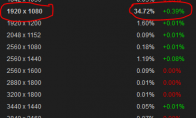一年以前就曾有报道称,PC玩家中只有三分之一的人在用1080p分辨率玩游戏。而使用多显示器组或者2K,4K甚至8K分辨率的人则更少。现在,过了一年,似乎这个比率怒涨了一个百分点。今年七月份,Valve进行了一次年度问卷调查,根据结果数据显示,只有34.72%的PC玩家能使用1080p进行游戏。如图:这个数字比去年的32.89%多出了1.83%。可能许多人都不敢相信这个事实,许多人都默认以为所有PC都能至少达到1920x1080p的游戏分辨率。话说回来,索尼的400美元的PS4可是能够确保达到1080p。只要是市面上卖的、承诺能够达到1080p的游戏。占据分辨率第二名的是1366x768的笔记本分辨率。今年的比率是26.61%,比去年的25.60%高出1.01%。有趣的是1680x900分辨率的用户,去年占7.8