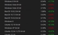 上个月,Valve的月度调查显示,2012年12月操作系统Windows 8 64位占有率紧随Windows XP之后。调查同时显示Windows 8占有率的占有率已经超过了Windows Vista操作系统。 根据调查中显示Windows 8的用户的百分比(综合了32位和64位操作系统)的数据后,Windows 8的用户占有率为8.76%,而在2012年12月,该数据只有6.93%;而逐渐退出人们视野的Windows Vista系统的用户占有率仅为6.02%。 与此同时Windows 7的用户占有率由2012年12月份的70.47%,下降至本月的69.73%,如果按照这样的趋势发展的话, Window