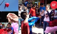 近20层楼的高空中出现了家喻户晓的超人,他穿着一身紧身衣,左手牵着一把气球,右手拿着一把玫瑰,从天而落。这不是在拍电影,而是发生在江苏省连云港的求婚过程。穿着超人服装的是一位戴眼镜的男青年,他带着一束红玫瑰以及大串的气球驾着摩托前来向女友求婚。这个求婚也许是一次炒作,但这并不影响这个过程的甜蜜和感人。或许这只是这位富有创意的男友的一次真心的告白,因为至少他没有开着雪佛莱前来(也许他该向当地经销商求助?)。据说,求婚现场加起来总共有9999个气球,起重机将他升到大约20层楼的高度后将他放下,这样他就可以从天而降手持钻戒跪地求婚。女孩很高兴地答应了求婚,让后这幸福的一对手持玫瑰驾着他们的摩托而去。让我们祝福他们。