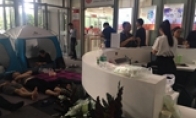 前一段时间的“巴铁”投资事件,公司用酒水来应付投资人的做法似乎给了乐视供应商一些灵感,在最新的乐视移动讨债供应商诉求中,他们将酒水也列入其中。第五次见完乐视移动CEO(代)阿不力克木·阿不力米提(简称“阿木”)后,作为乐视债主的乐视移动成都供应商傅先生仍然不满意。乐视大厦大堂的讨债人 本文图均为 澎湃新闻记者 张枭翔 图从找来瑜伽垫、帐篷等装备躺在地上向乐视讨债至今,傅先生及其他20家乐视移动供应商的乐视讨债之旅已经持续了近40天。8月1日,傅先生告诉澎湃新闻记者,他们一行来乐视大厦讨债的21家乐视移动供应商,都是乐视线下展厅承建商,已于当天中午到乐视和阿木沟通了,但乐视方面的答复仍然是没钱。“(乐视方面)没有任何积极性的答复。&rdqu