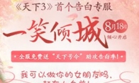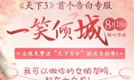 七夕将至,《天下3》给力神助攻,倾心开启首个告白专服“一笑倾城”,免费送“天下号令”助你大声表白示爱!浪漫相约更需激情相伴,第三届伽蓝势力争霸赛火热进行中,用“啪啪啪”的键位操作秀出最性感的战场厮杀!还有《当归2》暖心回归,温情接档,全方位无死角360度承包你的燃情夏末!【告白专服“一笑倾城”倾心开启,《天下3》给力助攻告白季】北方有佳人。绝世而独立。一顾倾人城。再顾倾人国。浪漫的七夕将至,目测前方一大波虐汪大军即将抵达战场,《天下3》特别化身神助攻,倾心开启首个告白专服“一笑倾城”,不仅有丰厚返利活动帮助冲刺,更有“天下号令”全服免费送,助少侠大声宣言示爱!是时候赶在