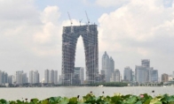 有“世界第一门,亚洲第一大酒店,中国第一大体量的超高层建筑”之称的苏州东方之门近日在微博上遭到网友吐槽。因网友“常想一二02”现场实拍的苏州市“东方之门”即将完工的照片,众多网友群起吐槽,“这个作为牛仔城的标志建筑不错……这是秋裤呢还是牛仔裤呢?而且还是低腰的哦……”。也有网友感叹,央视的大楼终于不再孤独。苏州的“东方之门”,外观酷似秋裤据报道,苏州的“东方之门”层高69层、高301.8米。2004年9月奠基开工。位于苏州工业园区中央商贸区东、星港街以西的地块上。由国际排名前列的多家著名设计单位竞标,并由英国RMJM公司中标,是一座双塔连体门式建筑。其设计灵感来自于苏州古城门的创意。即将竣工的“东方之门”门洞高246米,跨度68米,为世界最大的门形建筑,也是中国目前单体建筑面积最大的超高层建筑。因此也被称为“世
