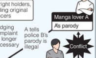 同人志是指一群粉丝因共同的爱好聚在一起,创作发行自己的漫画,杂志和小说。虽然日本有非常严格的版权法,但同人志是免费的所以非常受欢迎。但是现在,有一个新的交易协定将改变这个现实。日本拥有非常庞大数量的极客,同人志可以提供平台让刚进入行业的艺术家新人,创作带有自己的名字的作品,让他们成长,而粉丝们可以购买独立的著名漫画模仿作品。而版权拥有者通常都对同人志睁一只眼闭一只眼,他们知道漫画画家都需要空间来成长。但是在Trans-Pacific Partnership(TTP)下,警方还是会追查侵犯版权的同人志创作者 。这个TTP是一个交易协定,有12个国家在此协定内,包括美国,加拿大,墨西哥,日本,韩国,台湾,菲律宾,泰国,澳大利亚,哥伦比亚。中国目前还没有加入。目前日本的版权法是在版权拥有者起诉才会进行调查,没有起诉就