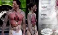 墨西哥首都墨西哥城,环保主义者半裸彩绘“人体器官”,呼吁关注日益严重的空气污染问题,提倡绿色出行。