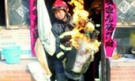 • 北京消防现“抱火哥”:消防员抱着火煤气罐到屋外
