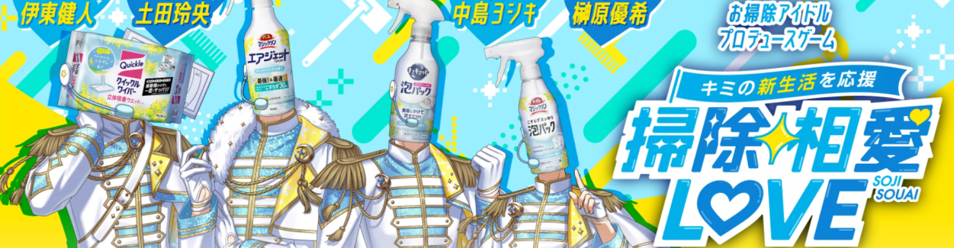 不过,从整体的作品内容看,《掃除相愛LOVE》虽然有一个还算完整的故事流程,也正儿八经地做了每个角色的个人线,但它本质上仍然是关于花王产品的大型广告,比如游戏里那几位偶像在信心受挫的情况下,振作的方式是帮制作人打扫房间,一边打扫一边介绍产品卖点,顺便输出一些“谁会用拖把湿巾碰你的脸啊,好好珍惜自己啊,笨蛋”这种诡异情话。